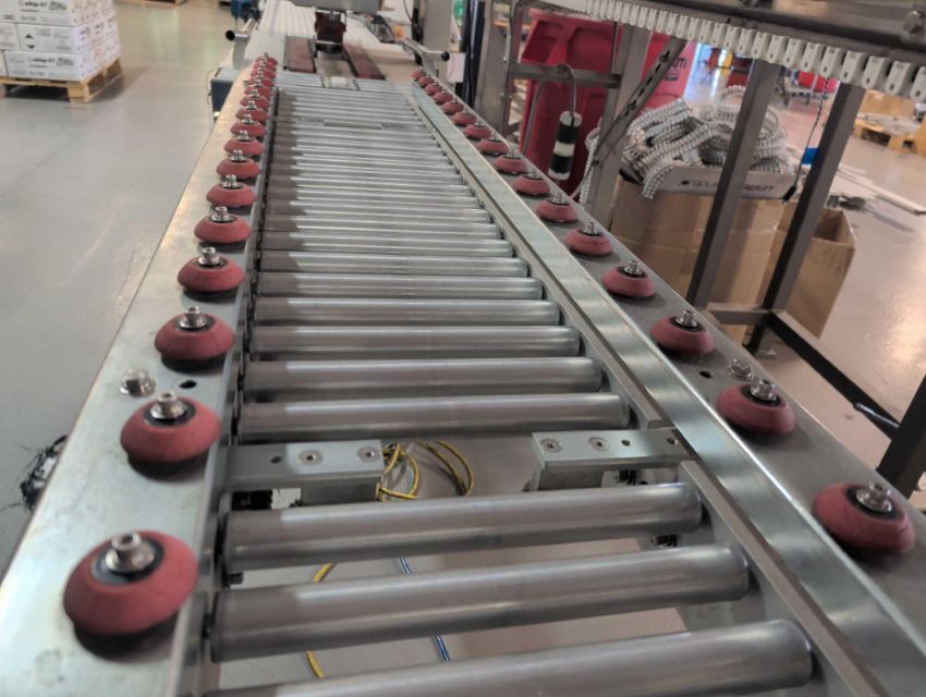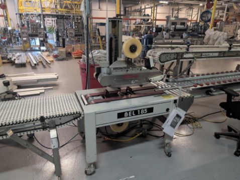BEL 185 Semi-Automatic Random Case Taper/Infeed Roller Conveyor with: