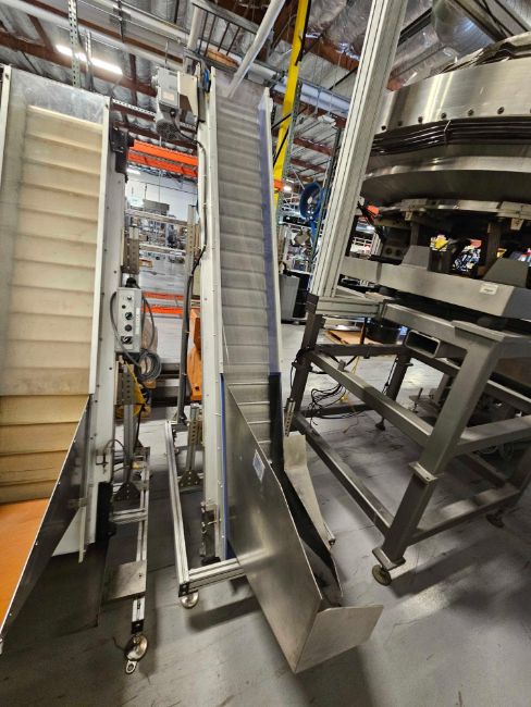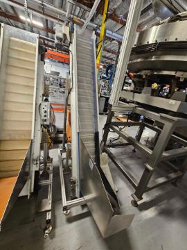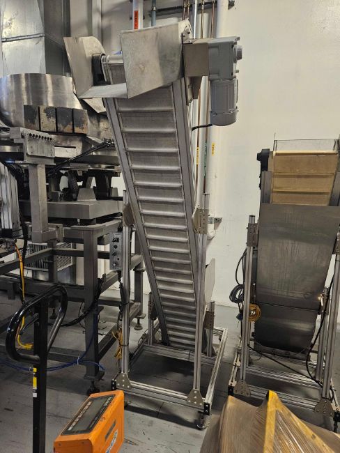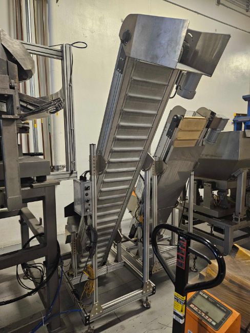 77" Discharge Fortville Inclined Cleated Conveyor with Hopper with: