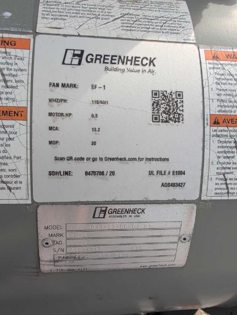 Greenheck Industrial Exhaust Ventilation System with: