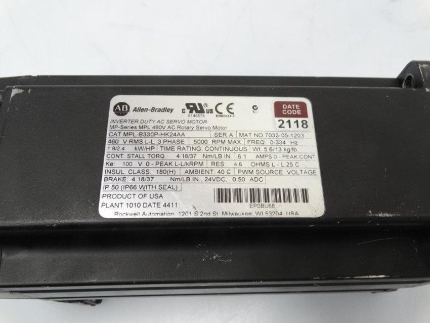 Used ALLEN BRADLEY MPL-B330P-HK24AA SERIES A SERVO MOTOR