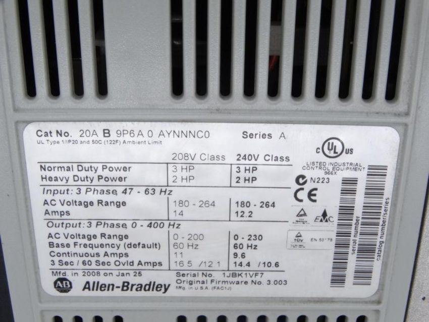 Refurbished ALLEN BRADLEY 20AB9P6A0AYNNNC0 SERIES A DRIVE