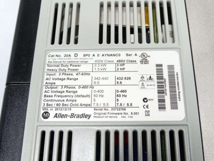 Refurbished ALLEN BRADLEY 20AD5P0A0AYNANC0 WITH 20-HIM-A3 SERIES A DRIVE