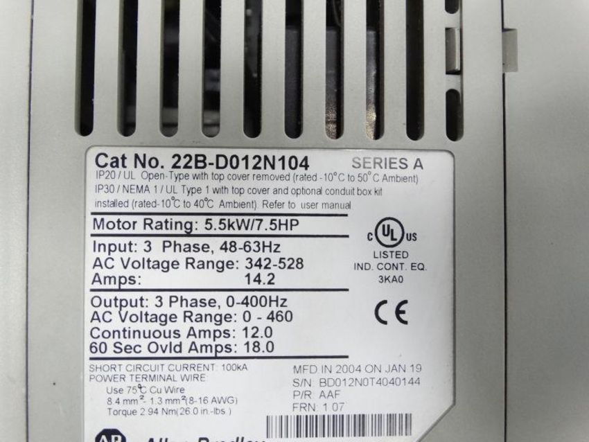 Used ALLEN BRADLEY 22B-D012N104 DRIVE