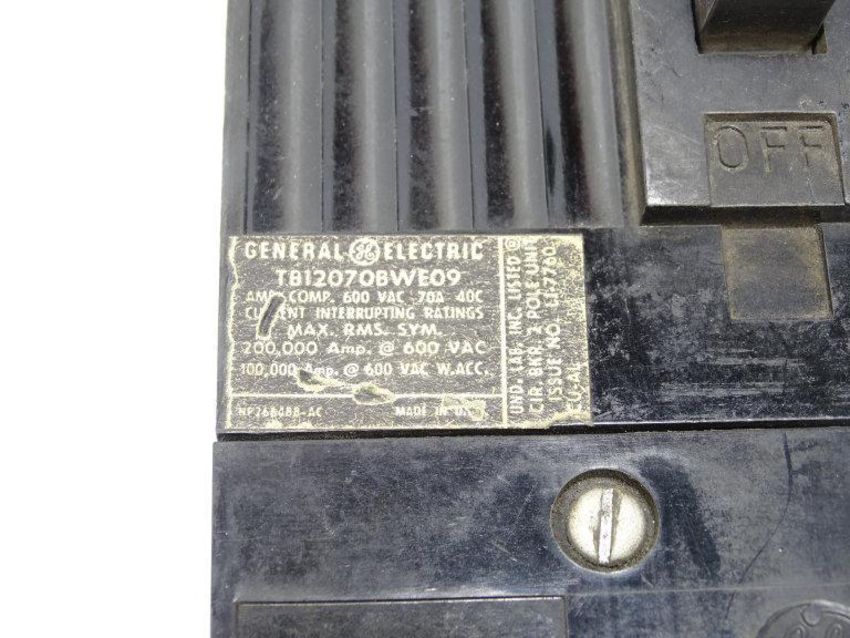 Used GENERAL ELECTRIC TB12070BWE09 CIRCUIT BREAKER