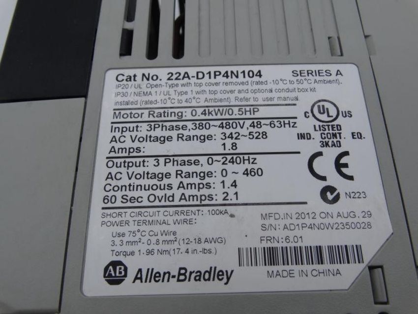 Refurbished ALLEN BRADLEY 22A-D1P4N104 SERIES A DRIVE