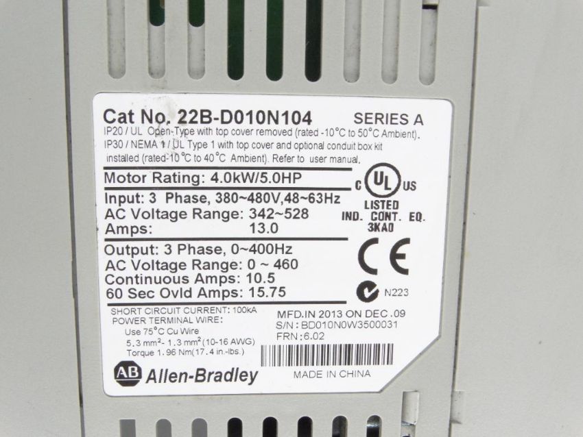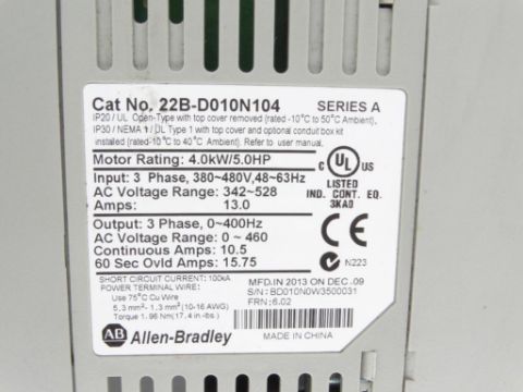 Used ALLEN BRADLEY 22B-D010N104 W/22-COMM-D DRIVE