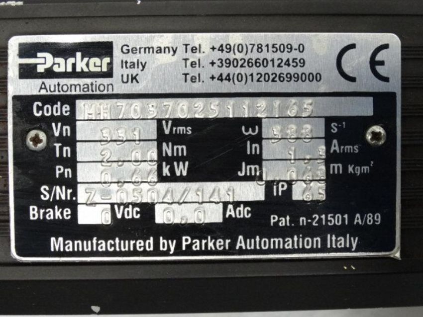 Used PARKER MH7037025112I65 SERVO MOTOR