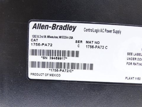 Used ALLEN BRADLEY 1756-PA72 POWER SUPPLY