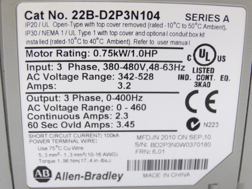 Refurbished ALLEN BRADLEY 22B-D2P3N104 DRIVE