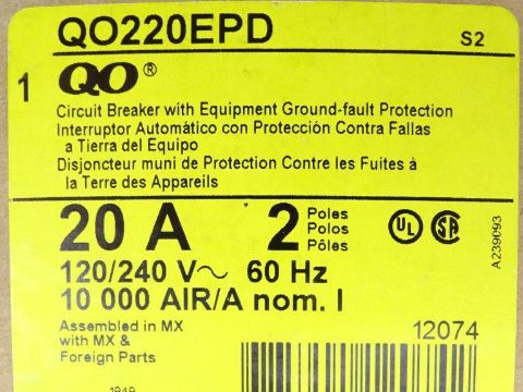 New in Box SCHNEIDER ELECTRIC QO220EPD CIRCUIT BREAKER