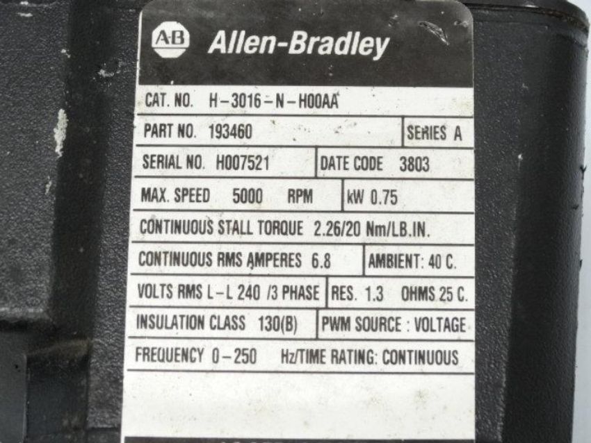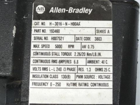 Used ALLEN BRADLEY H-3016-N-H00AA SERIES A SERVO MOTOR