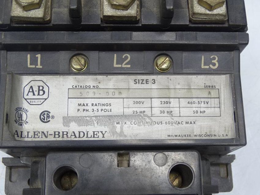 Used ALLEN BRADLEY 509-DOD MOTOR STARTER