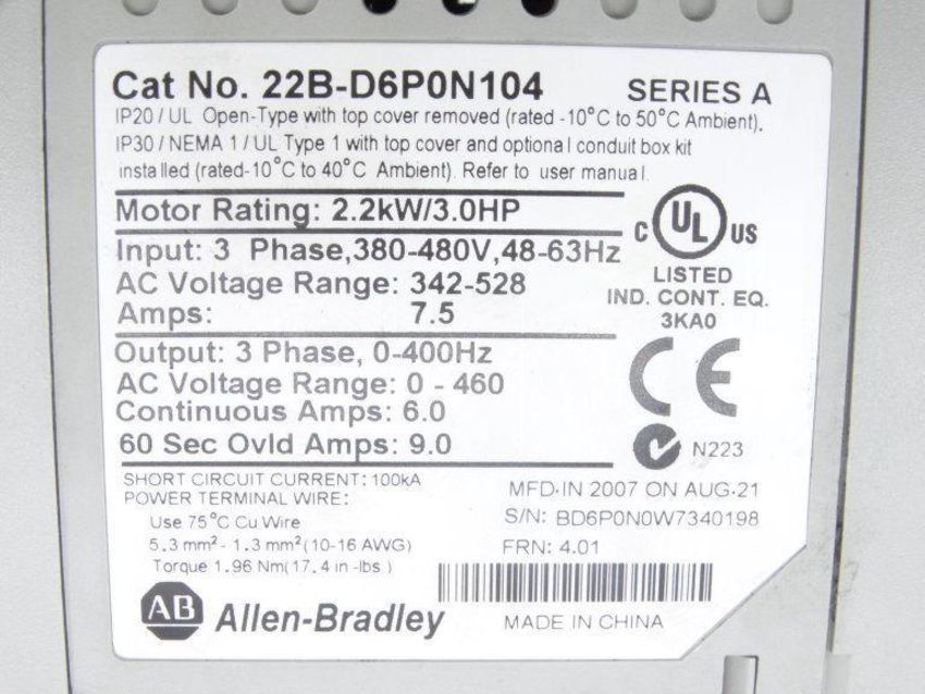 Used ALLEN BRADLEY 22B-D6P0N104 DRIVE