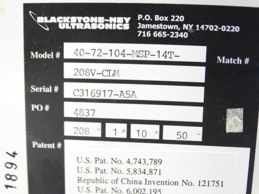 Used BLACKSTONE NEY ULTRASONICS 40-72-104-MSP-14T-208V-CLM ULTRASONIC GENERATOR