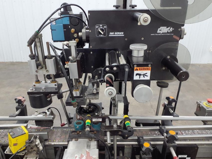 The CTM International 360 Series Tamper Strip Labeler is a high-speed labeling machine designed for applying tamper-evident strips to a variety of products. It features adjustable settings for different product sizes, ensuring versatility in labeling applications. The machine is built for continuous operation, enhancing efficiency in production environments. With its robust construction and user-friendly interface, the 360 Series provides reliable performance for tamper-evident labeling needs.