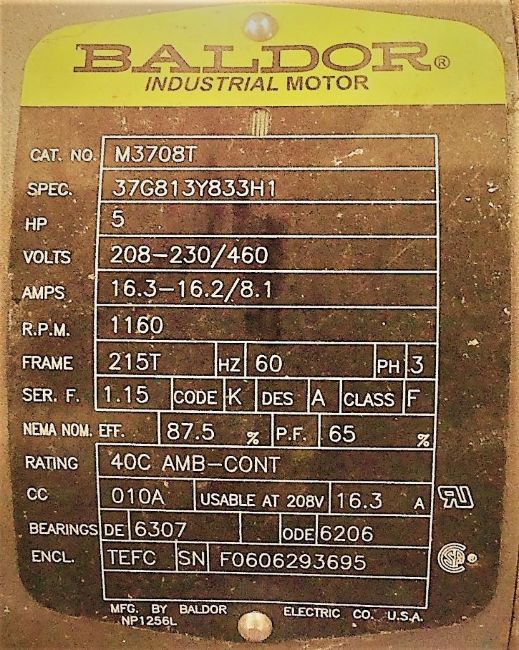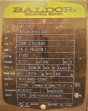 • Electrical: 208-230/460 volts, 60 hz, phase 3
