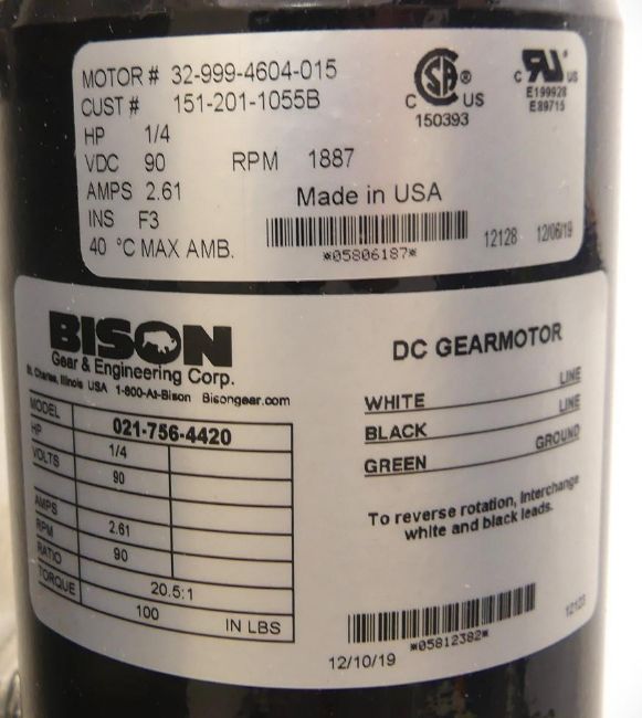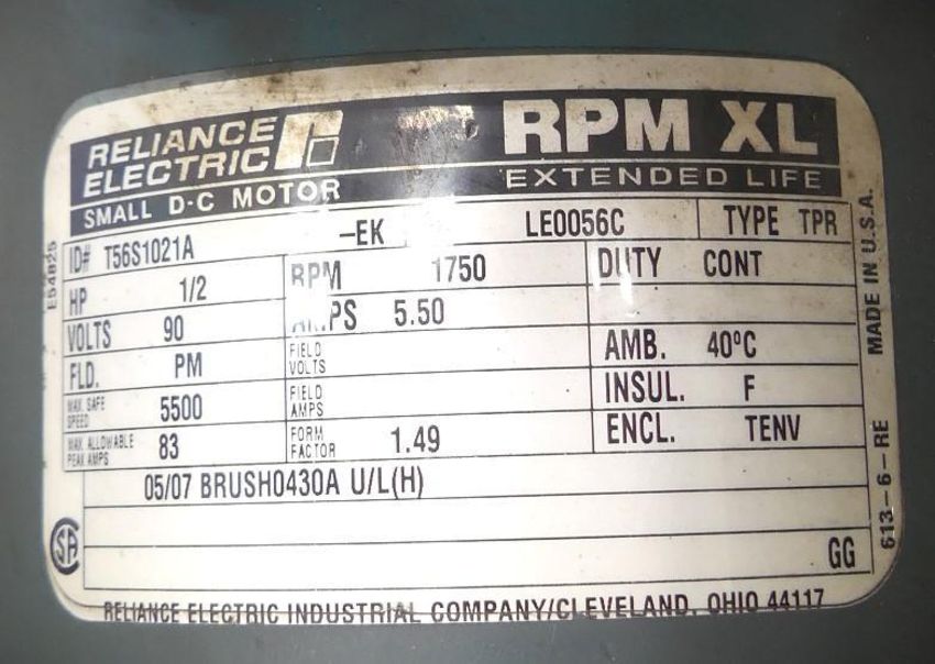 • Motor: 0.5 horsepower, 1725 rpm