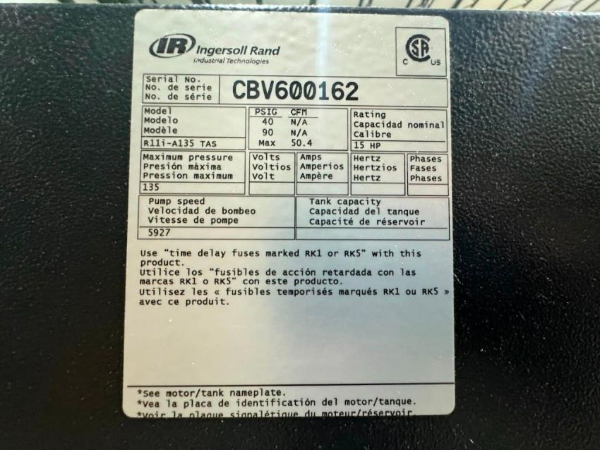 Used Ingersoll Rand R11i-A135 TAS Total Air System with: