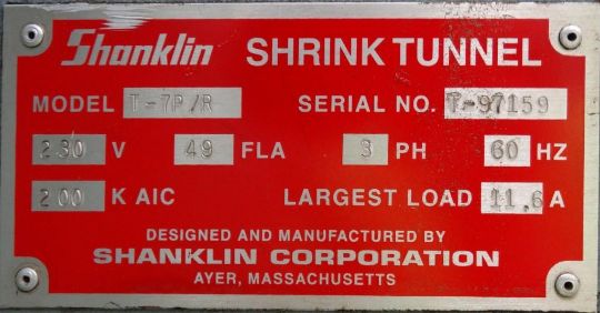 Used Shanklin T7PR Heat Tunnel with:
