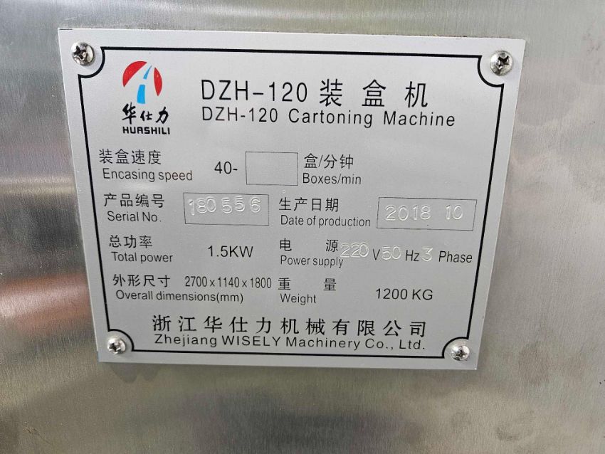 Used DZH-120 Cartoning Machine with: