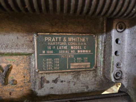 Used Pratt and Whitney 16-inch Model C Lathe with: Work table dimensions: Length: 78 inches Width: 16 inches  Overall dimensions: Length: 144 inches Width: 42 inches Height: 64 inches