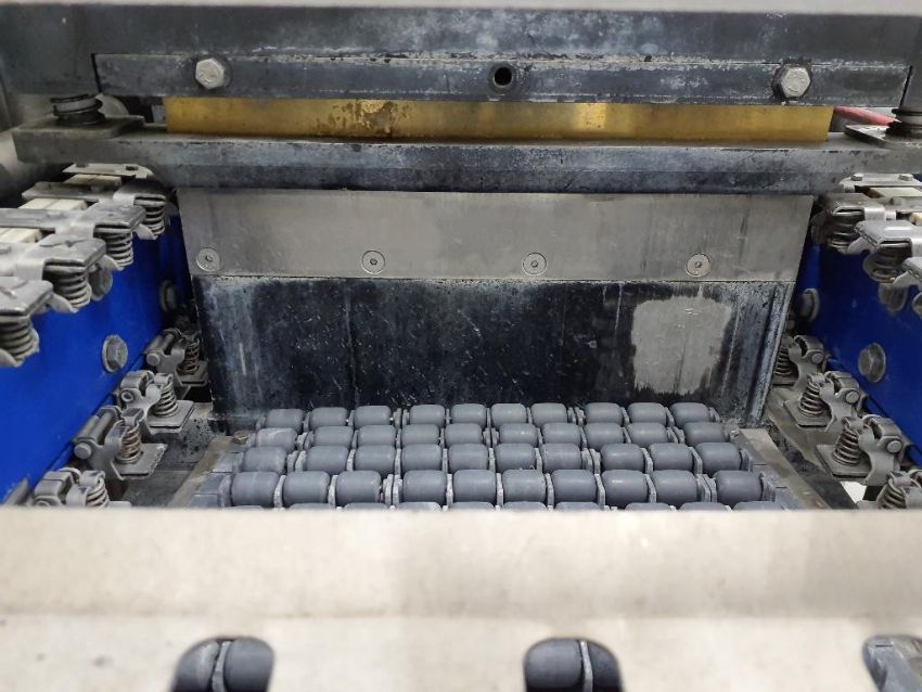 The VisionPak machine takes semi-rigid and rigid film applications. The film is loaded onto the bottom film mandrel and fed into the transport chain. The machine then forms the film into the desired package. When the bottom form has been made, the transport chain carries the film into the loading zone. In the loading zone, the product is placed into the package. After the package is loaded, the clip chain carries the package to the sealing station. Top film is brought against the bottom film and sealed in the seal station. Upon exiting the seal station, the package travels through the cutoff area and is discharged from the machine.