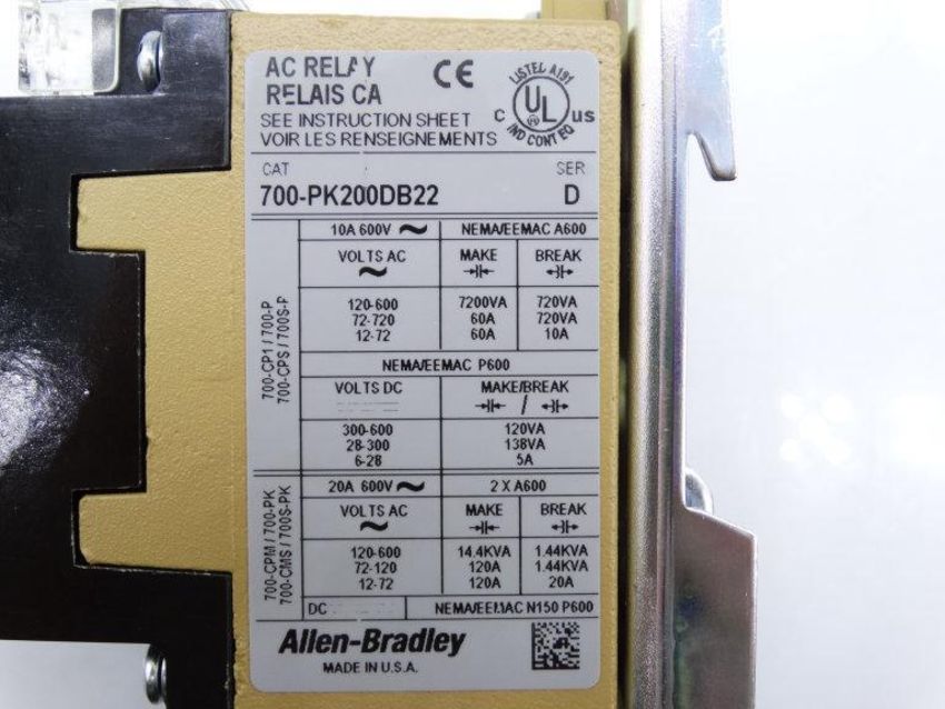 New ALLEN BRADLEY 700PK200DB22 SERIES D RELAY / Condition:New / Classification:Relay / Qty: 1