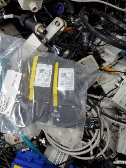 Pallet of used mro including small control cables, pneumatics, sensors and more. See photos for details.