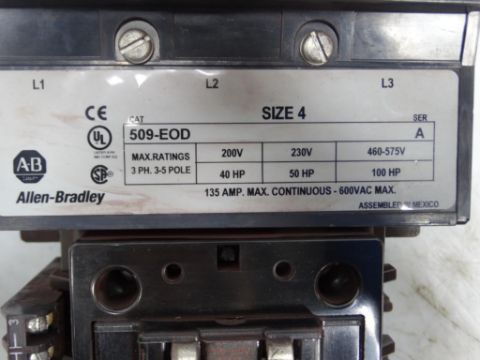 Used ALLEN BRADLEY 509-EOD SERIES A MOTOR STARTER / Condition:Used / Classification:Motor Starter / Qty: 1