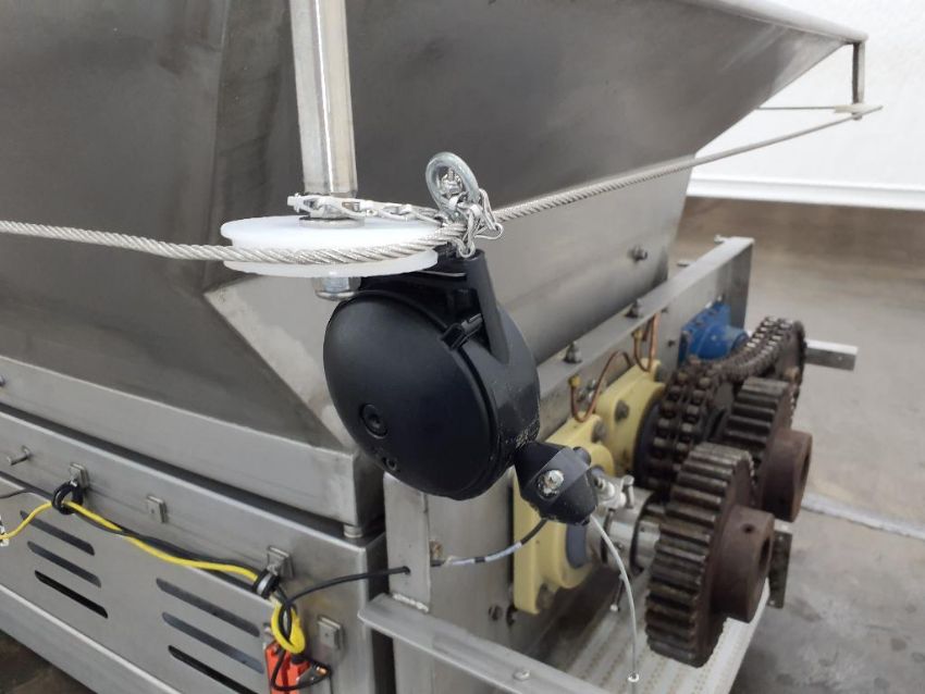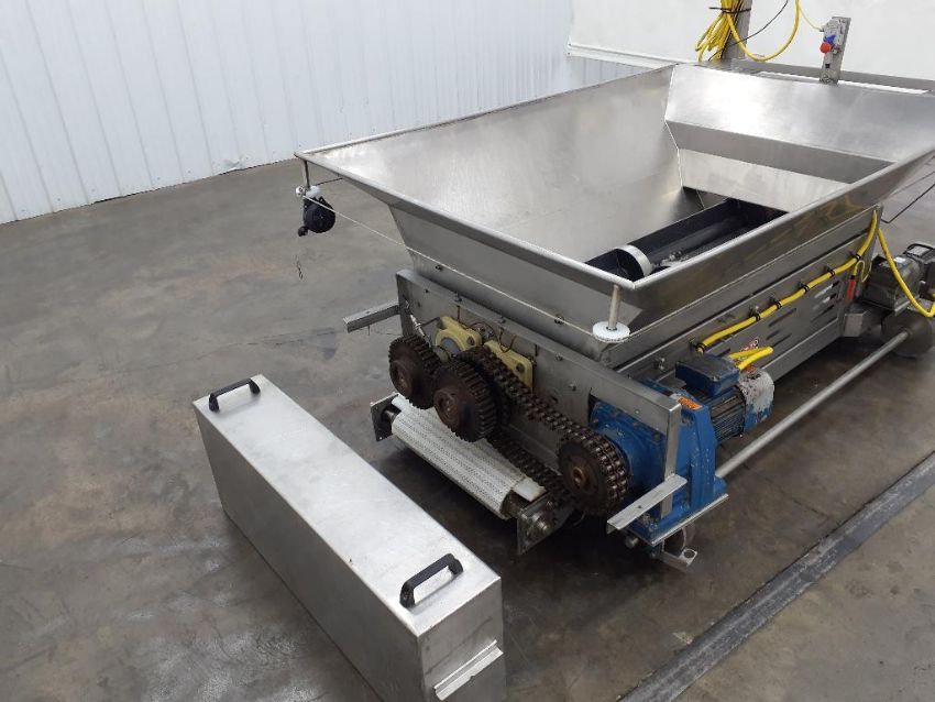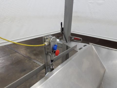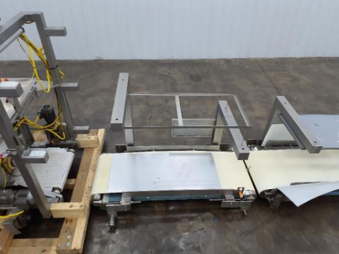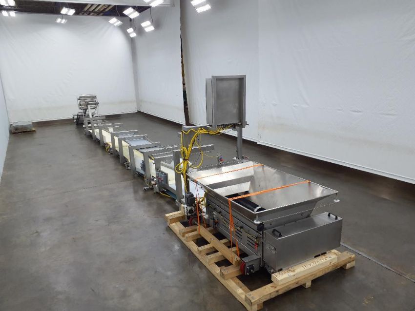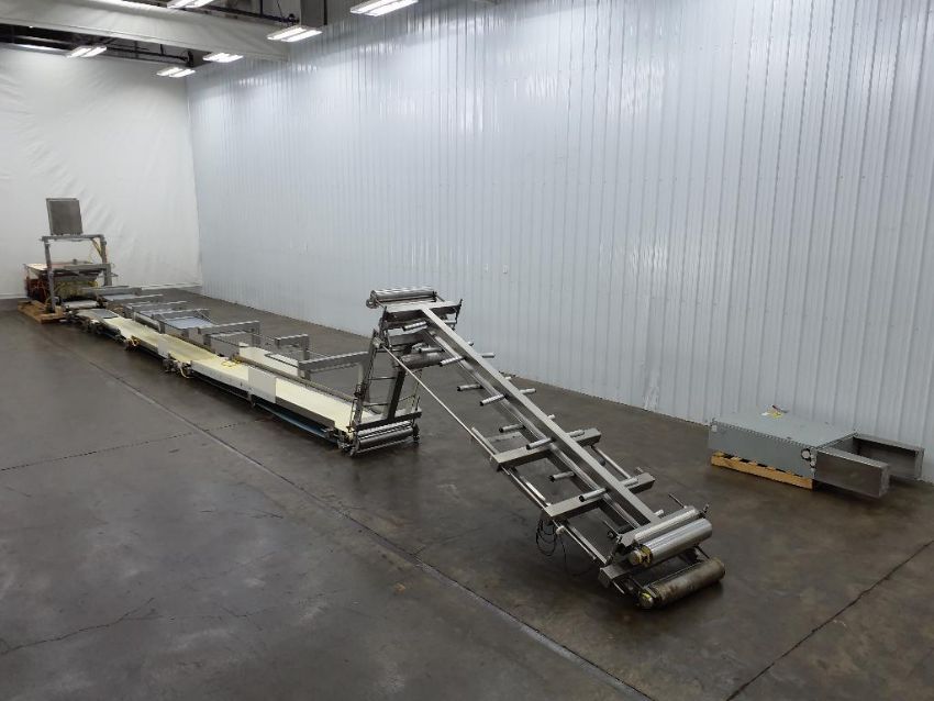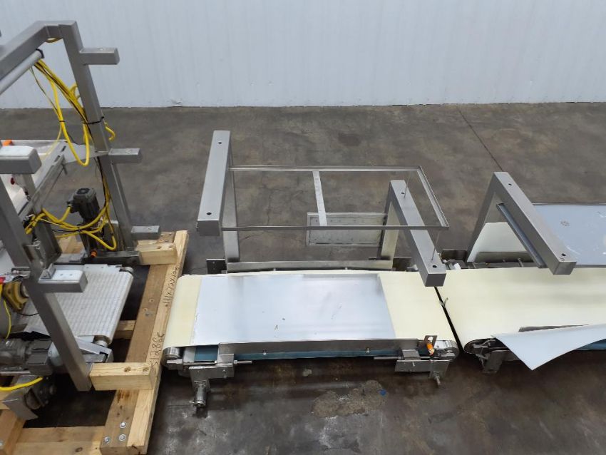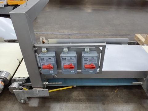 Last application: chunking dough. The system has wheels to move back and forth between mixers on a track. The support conveyance was set up to pinch the dough and elavate the chunked dough into different lines into the facility.