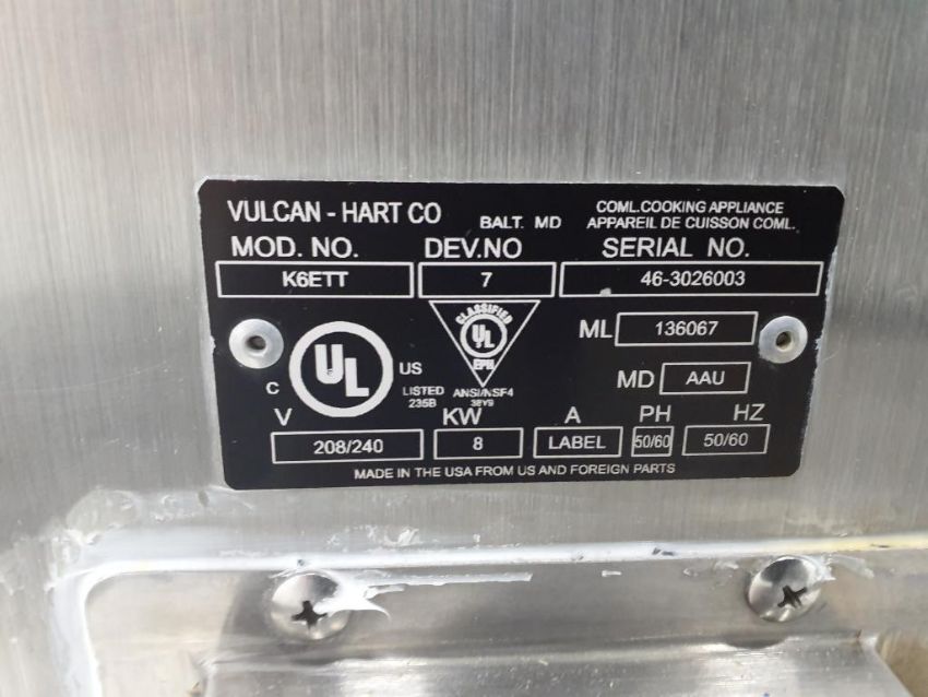 Used Vulcan Kettle with: