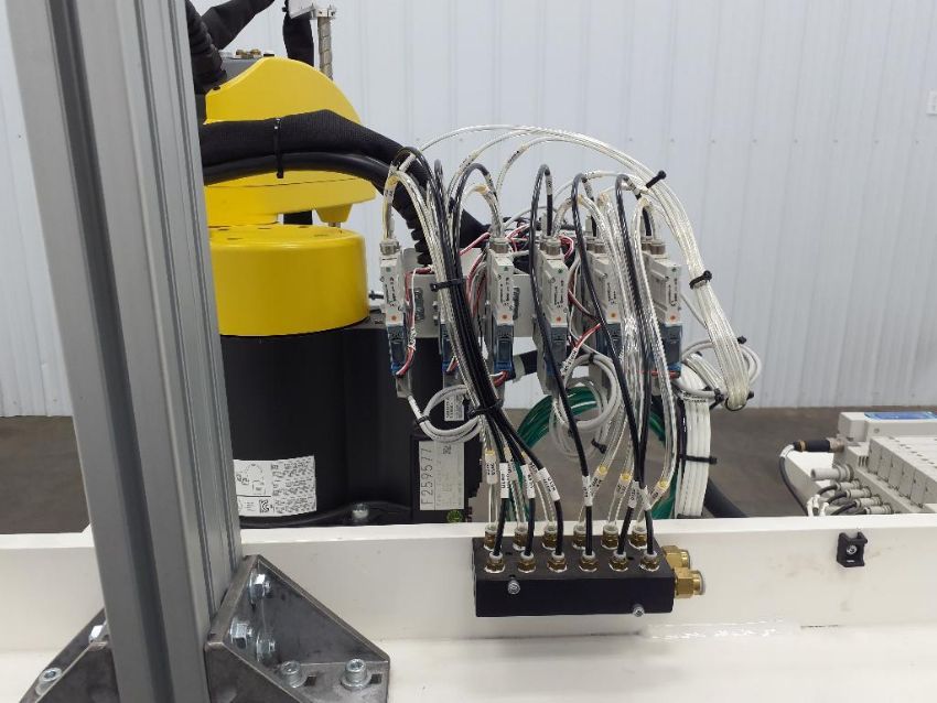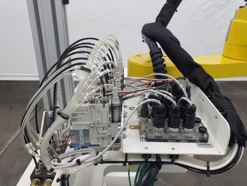 The Fanuc SR-6iA is a versatile and compact robotic arm designed for precise handling and automation tasks in various industrial applications. It is part of Fanuc's series of industrial robots known for their reliability and flexibility in manufacturing environments. The SR-6iA offers high-speed performance, a robust payload capacity of up to 6 kg, and a wide reach of 1,443 mm, making it ideal for tasks like assembly, material handling, picking, and packaging.