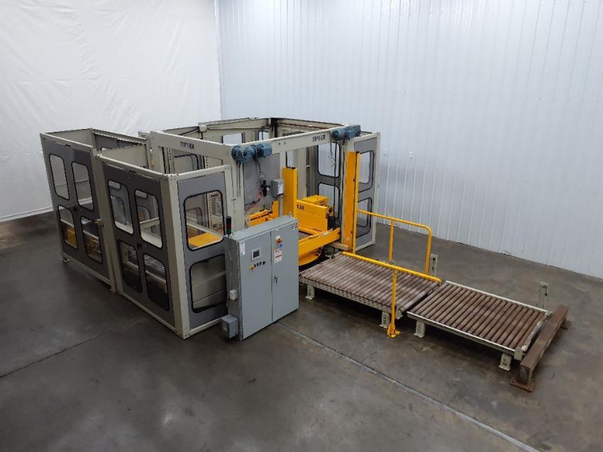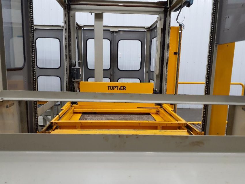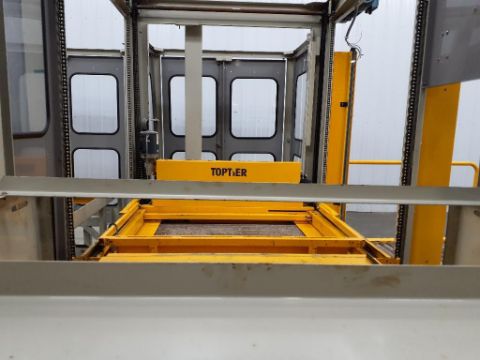 Used TopTier TTL-30 Low Level Palletizer with integrated pallet wrapper.