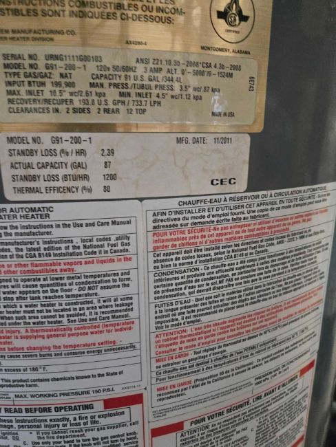 Used Rheem-Ruud Universal Commercial Gas Water Heater with: